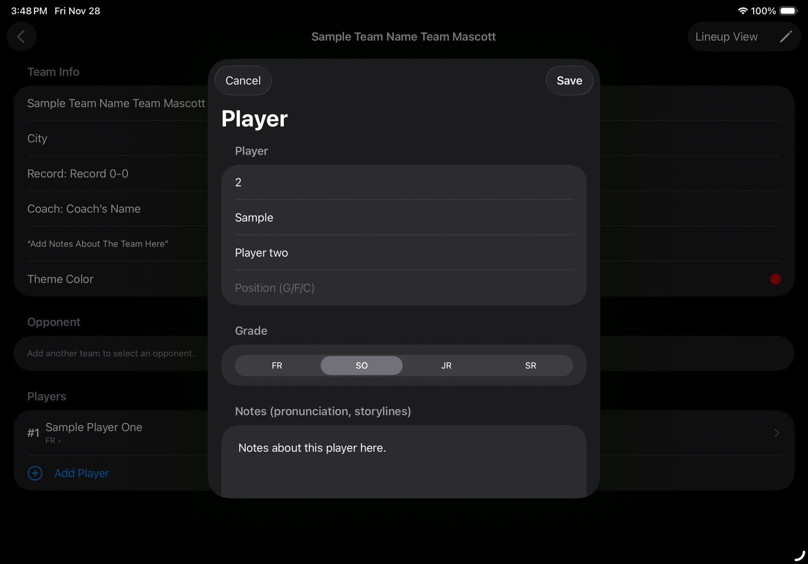 Your play-by-play companion.CallSheet PxP is an iPadOS app built for sports broadcasters who need quick access to player names, numbers, notes and game info. Keep everything organized, easy to see and ready the moment you need it, all from one, simple app.COMING SOON TO iPAD